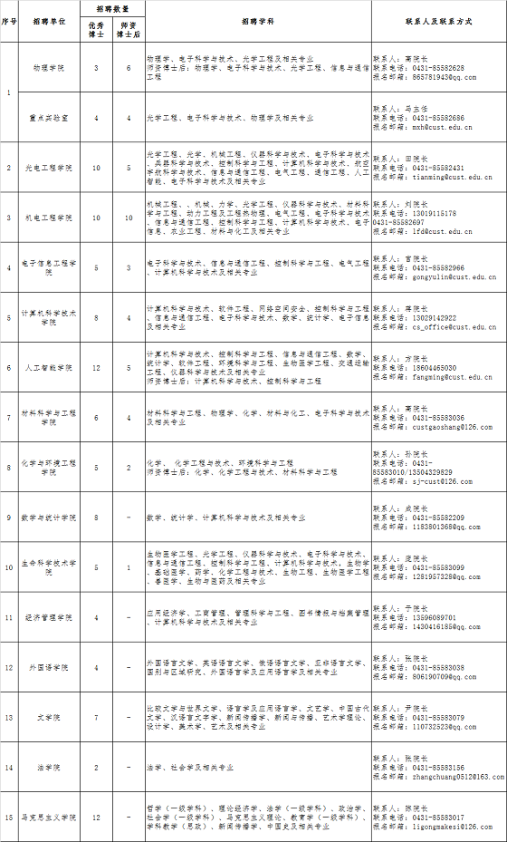 (2)根據(jù)《長春理工大學優(yōu)秀博士引進管理辦法》,為符合條件的優(yōu)秀博士提供安家費10-30萬元;提供科研啟動經(jīng)費,理工科5-20萬元,人文社會科學學科3-10萬元。
