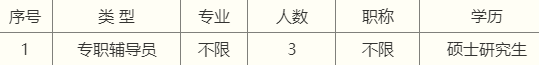 專(zhuān)職輔導(dǎo)員:碩士研究生及以上學(xué)歷,要求中共黨員。有心理學(xué)、教育學(xué)、思政類(lèi)相關(guān)專(zhuān)業(yè)優(yōu)先;有心理咨詢師、就業(yè)指導(dǎo)師證書(shū)的優(yōu)先。