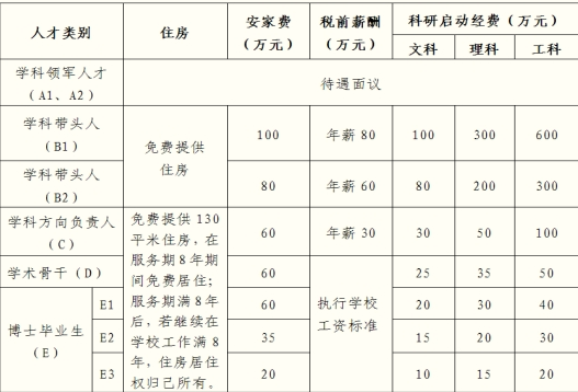 (6)原則上引進的博士研究生其配偶為全日制普通碩士研究生及以上學歷,能適應(yīng)教學工作,所學專業(yè)與現(xiàn)有本科專業(yè)要求相符的,按照有關(guān)政策安排工作;不安排配偶工作的博士研究生,增加安家費6萬元。