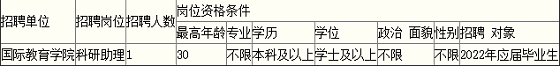 國際教育學(xué)院科研助理130不限本科及以上學(xué)士及以上不限不限2022年應(yīng)屆畢業(yè)生