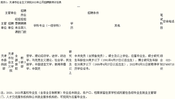 (一)招聘單位名稱:天津市社會主義學院