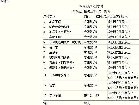 10.所需的專業(yè)和其他條件詳見《河南地礦職業(yè)學院2022年公開招聘工作人員一覽表》。