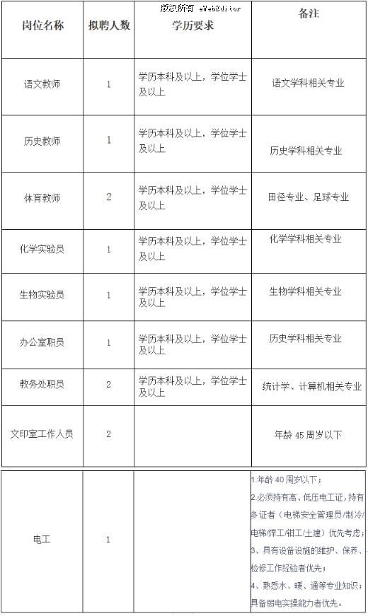 現(xiàn)因?qū)W校發(fā)展,需招聘以下人員: