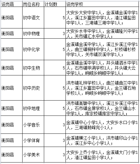 根據(jù)《2022年湖南省農(nóng)村義務(wù)教育階段學(xué)校特設(shè)崗位計劃教師招聘公告》中“定縣、定校、定崗”“公開、公平、自愿、擇優(yōu)”的招聘原則和“設(shè)崗縣教育(體)局根據(jù)湖南省特崗計劃信息管理平臺提供的擬聘用人員成績,分直接志愿錄取和征集志愿錄取兩個批次,分學(xué)段分學(xué)科依據(jù)總成績從高分到低分的順序由擬聘用人員選定聘用崗位”的要求,若省教育廳提供的擬聘用人員總成績相同,則按擬聘用人員提供的本人有效二代身份證上注明的出生日期為依據(jù),年齡大者優(yōu)先選崗;若出生日期相同,則抽簽決定選崗順序,F(xiàn)將2022年衡陽縣義務(wù)教育階段學(xué)校特設(shè)崗位計劃教師招聘崗位公告如下: