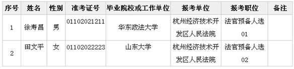 2015年杭州市考試錄用公務(wù)員考察公示名單(經(jīng)濟(jì)技術(shù)開發(fā)區(qū)法院)