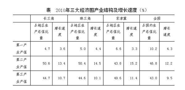 三大經(jīng)濟圈中,2010年三次產(chǎn)業(yè)增長速度均超過全國平均水平的有幾個?