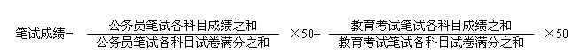 筆試成績由高分到低分排序,按照每個職位招錄計劃數(shù)和參加體能測評人員1:4的比例,確定各職位參加體能測評人員。筆試成績計算公式為:
