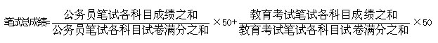 考生的筆試總成績(jī)由公共科目筆試成績(jī)與教育入學(xué)考試成績(jī)合成,其計(jì)算公式為: