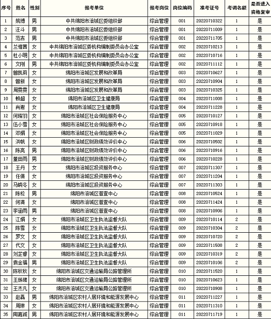 附件:涪城區(qū)面向全省公開(kāi)考調(diào)20名公務(wù)員(參照管理人員)進(jìn)入資格復(fù)審人員名單