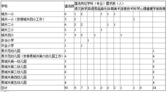 城關(guān)一小、城關(guān)二小、城關(guān)四小,面向鄉(xiāng)鎮(zhèn)超編小學(xué)教師遴選,城關(guān)三小、平金小學(xué)、卦治小學(xué)面向全縣鄉(xiāng)鎮(zhèn)小學(xué)教師遴選(凱里學(xué)院免費(fèi)師范生可以報(bào)考平金小學(xué)和卦治小學(xué)),城關(guān)二幼、城關(guān)三幼、縣示范幼兒園(安排城關(guān)六幼工作)面向鄉(xiāng)鎮(zhèn)超編幼兒園的教師,其他幼兒園面向鄉(xiāng)鎮(zhèn)所有幼兒園遴選。