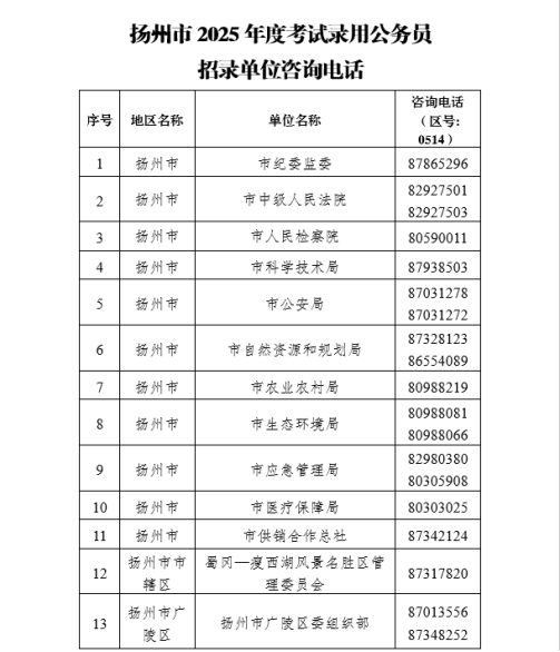 附件:1.揚州市2025年度考試錄用公務員招錄機關(單位)咨詢電話