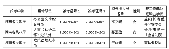 湖南省民政廳2014年擬錄用公務(wù)員公示