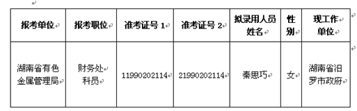 湖南省有色金屬管理局2014年考試錄用參照公務(wù)員法管理工作人員擬錄用人員名單公示