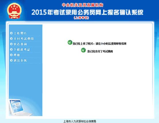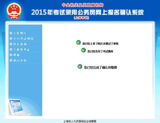 在察看確認(rèn)自己的照片符合要求后點(diǎn)擊按鈕 確認(rèn)我的照片 ,進(jìn)入網(wǎng)上支付考試費(fèi)用。如照片有問(wèn)題請(qǐng)重新上傳。