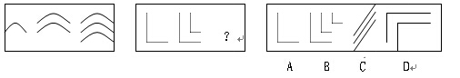 解答:正確答案為B。因?yàn)橹挥蠦能使兩套圖形具有相似性,僅僅元素不同,一個(gè)是實(shí)的曲線,一個(gè)是虛的直線,但兩組圖形中元素的排列規(guī)律完全相同。