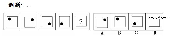第一種題型:圖形推理。每道題給出一套或兩套圖形,要求報(bào)考者通過觀察分析找出圖形排列的規(guī)律,選出符合規(guī)律的一項(xiàng)。