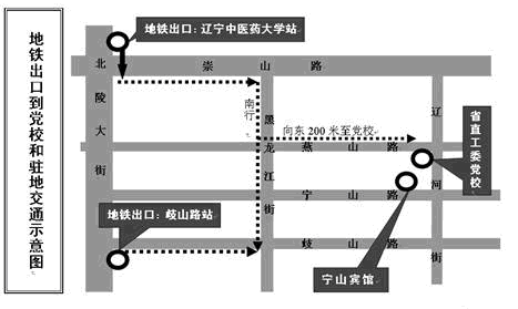 乘地鐵,可在遼寧中醫(yī)大學站下車,步行兩站到省直屬機關工委黨校。