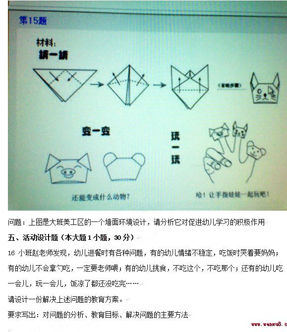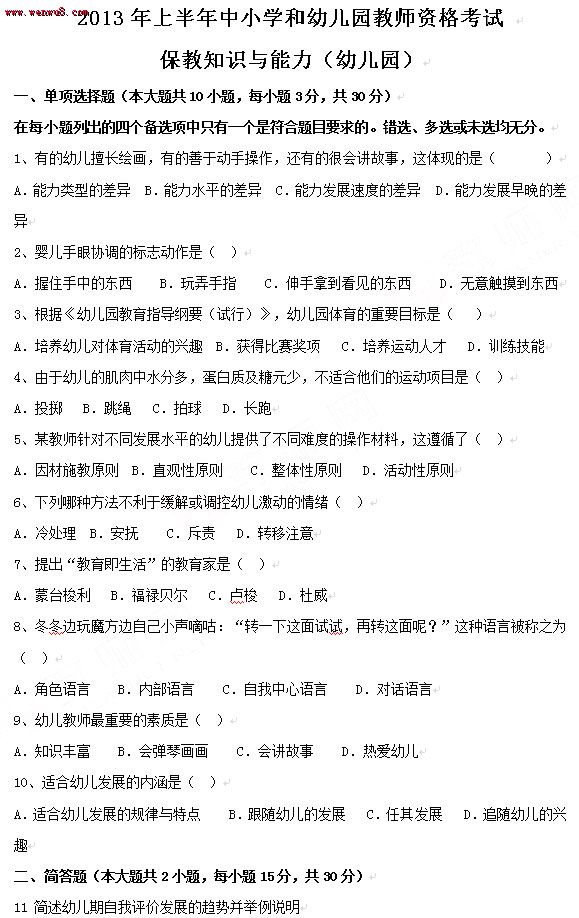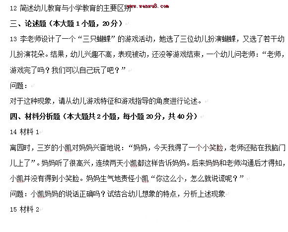 您現(xiàn)在的位置:首頁 >> 教師資格證考試真題 >> 幼兒保教知識(shí)與能力真題 >> 內(nèi)容