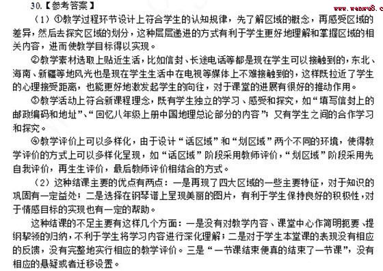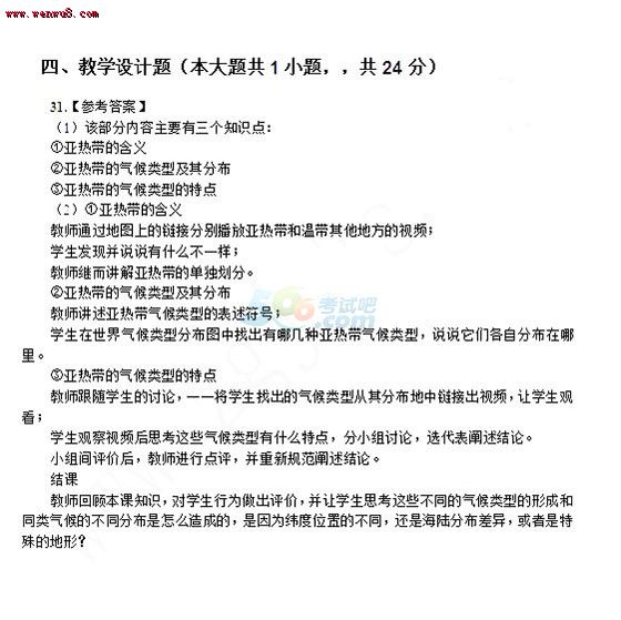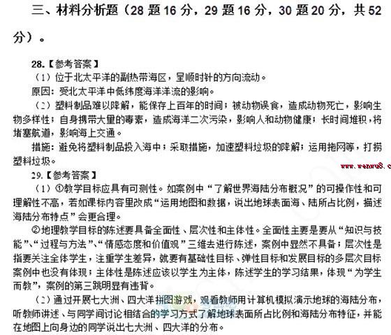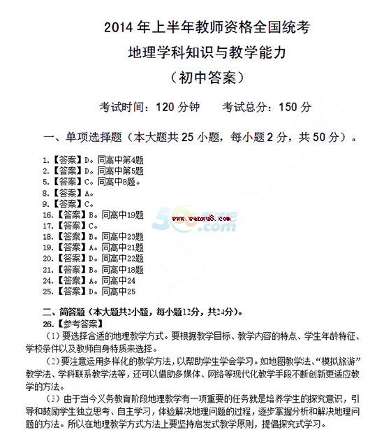 2014上半年教師資格考試《初中地理學(xué)科知識與教學(xué)能力》真題答案