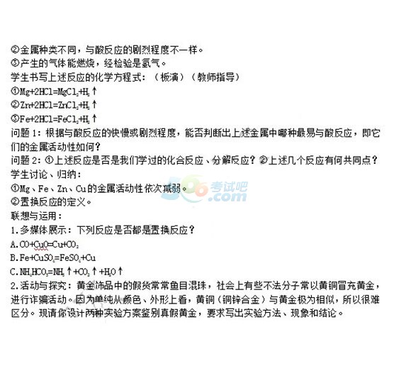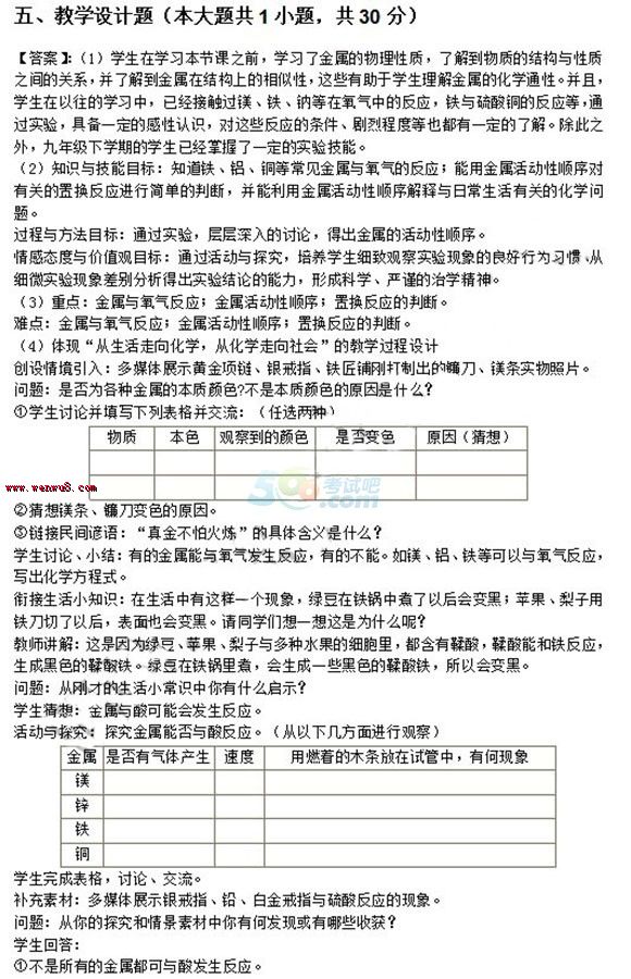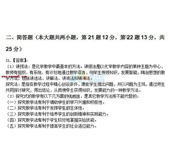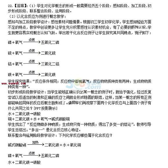 2014上半年教師資格考試《初中化學(xué)學(xué)科知識(shí)與教學(xué)能力》真題答案