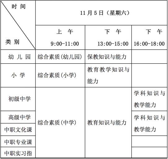 四、2016年下半年中小學(xué)教師資格考試筆試日程安排表