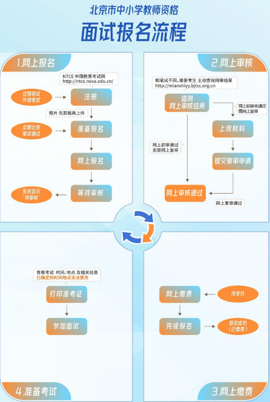 報(bào)考面試流程為:網(wǎng)上報(bào)名—網(wǎng)上審核確認(rèn)—網(wǎng)上繳費(fèi)—查詢準(zhǔn)考證—參加面試—查詢成績。