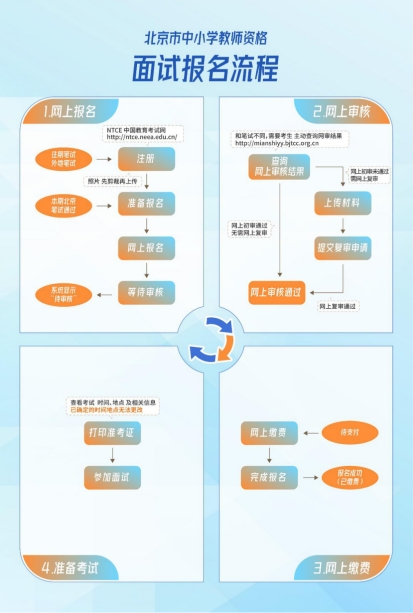 8.報考中職專業(yè)課及實習(xí)指導(dǎo)教師的考生需自備正式出版的北京市中等職業(yè)學(xué)校目前正在使用的教材,面試程序為: