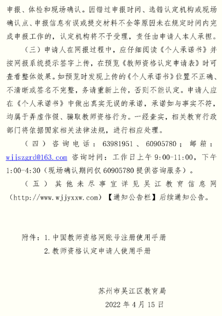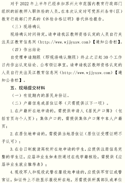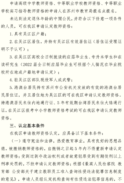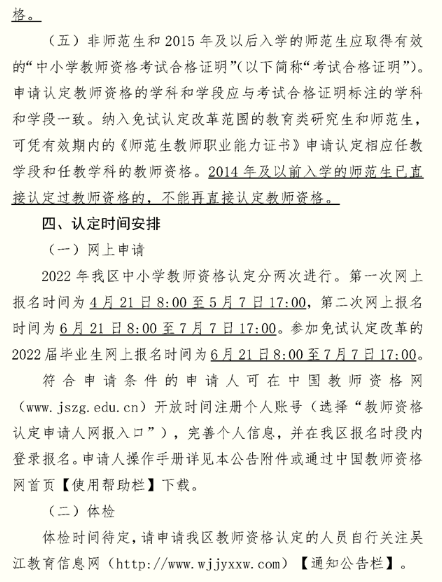 2022年江蘇蘇州市吳江區(qū)中小學(xué)教師資格認(rèn)定公告
