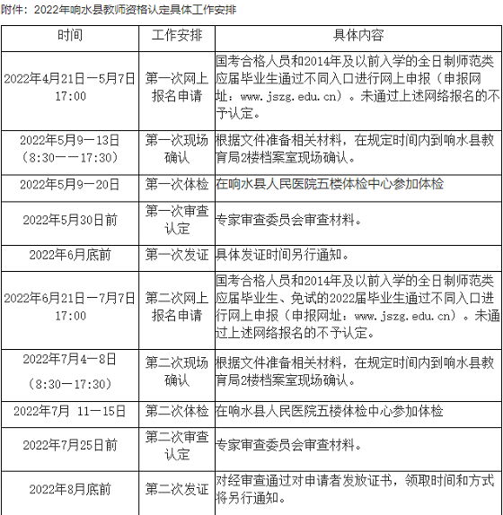附件:2022年響水縣教師資格認定具體工作安排