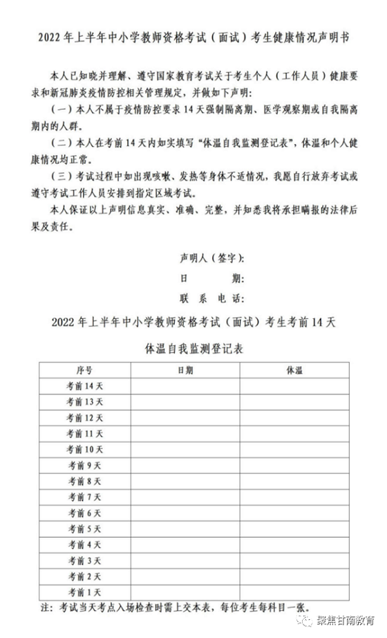 (五)面試期間,體溫檢測超過37.3℃的,嚴(yán)格按照《2022年上半年中小學(xué)教師資格考試面試疫情防控工作預(yù)案》處置。面試結(jié)束,嚴(yán)禁在考點內(nèi)隨意逗留聚集,必須及時離開考點。