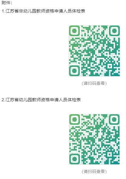 3.務(wù)必?cái)y帶個人身份證、《江蘇省教師資格申請人員體檢表(非幼兒園)》、《江蘇省教師資格申請人員體檢表(幼兒園)》(下載附件,A4紙雙面打印,貼好一寸近期正面半身免冠照片,此照片須與現(xiàn)場確認(rèn)提交照片版本一致)。