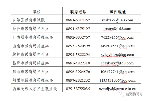 (八)權(quán)威標(biāo)識(shí)。請(qǐng)考生認(rèn)準(zhǔn)西藏自治區(qū)教育考試院官方網(wǎng)站和“西藏微青年”微信公眾號(hào)是我區(qū)權(quán)威發(fā)布各級(jí)各類教育考試招生信息的官方標(biāo)識(shí),謹(jǐn)防上當(dāng)受騙。