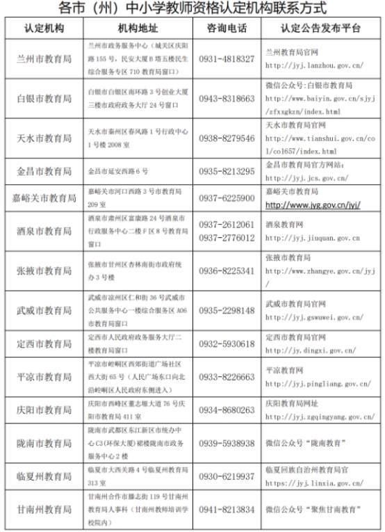 注:各縣(市、區(qū))認定機構(gòu)聯(lián)系方式由各市(州)教育局匯總公布。
