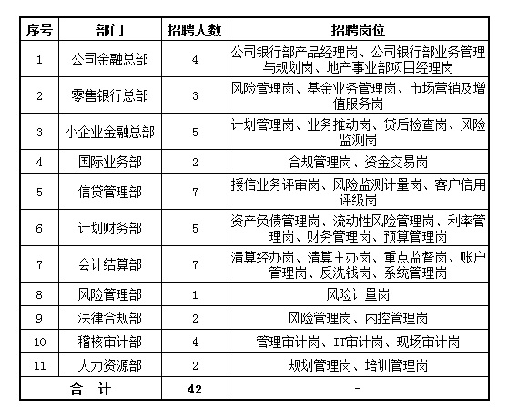 為加快建成具有綜合金融服務(wù)能力的區(qū)域性上市銀行,現(xiàn)面向社會(huì)公開招聘總行部門工作人員數(shù)名,誠邀勇于接受挑戰(zhàn)、德才兼?zhèn)涞木⒓用耍仓\發(fā)展,同創(chuàng)輝煌!