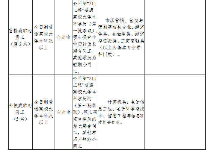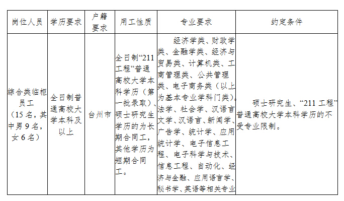 浙江臺州椒江農村合作銀行是經中國銀監(jiān)會批準成立的股份合作制銀行,因業(yè)務發(fā)展需要,現(xiàn)面向社會公開招聘員工若干名,F(xiàn)將相關事項公告如下: