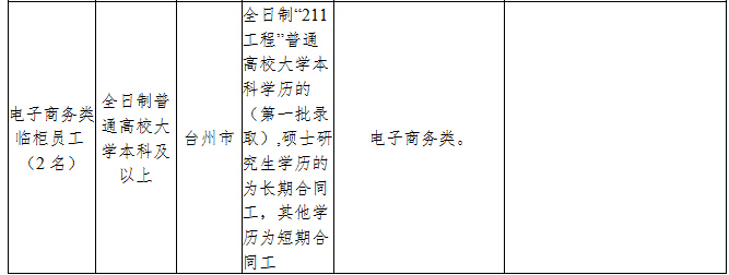 浙江臺州椒江農村合作銀行2016年招聘公告