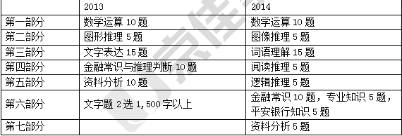 表2 2013-2014年平安銀行校園招聘考試題型題量分析