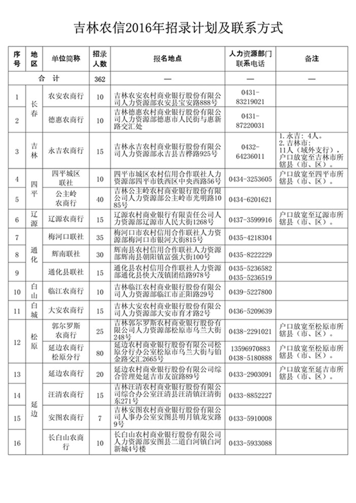 附件:吉林農(nóng)信2016年招錄計劃及聯(lián)系方式