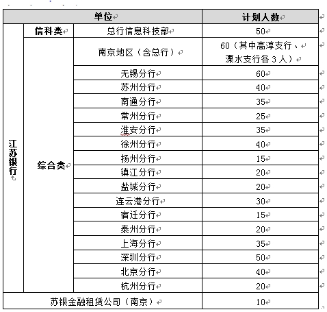 2、綜合類(南京地區(qū)及各分行、蘇銀金融租賃公司):