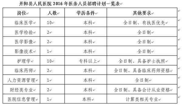 根據(jù)工作需要,經(jīng)院長辦公會(huì)議研究,并經(jīng)開陽縣衛(wèi)生和計(jì)劃生育局批準(zhǔn),決定面向社會(huì)公開招聘醫(yī)務(wù)工作人員,現(xiàn)將有關(guān)事項(xiàng)公告如下: