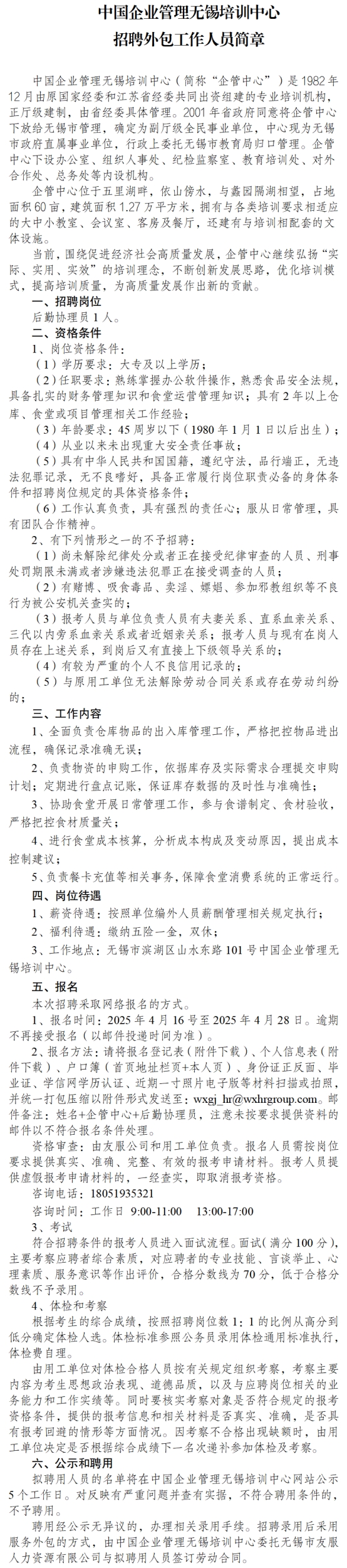 2025年中國企業(yè)管理無錫培訓(xùn)中心招聘外包工作人員簡章
