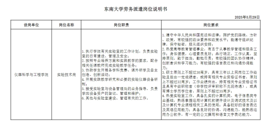 具體崗位名稱、崗位職責(zé)及招聘要求詳見《東南大學(xué)勞務(wù)派遣崗位說明書》。