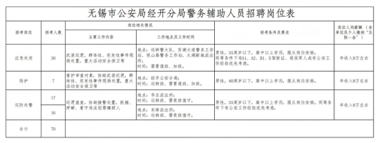 因公安工作需要,無錫市公安局經(jīng)開分局會同經(jīng)開交警大隊決定面向社會公開招聘警務(wù)輔助人員(非人民警察身份且非事業(yè)編制人員身份)80名,現(xiàn)將有關(guān)事項公告如下: