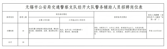 4.具備招聘崗位所需的資格條件及要求(詳見《無錫市公安局經(jīng)開分局警務(wù)輔助人員崗位表》及《無錫市公安局交通警察支隊經(jīng)開交警大隊警務(wù)輔助人員招聘崗位表》)。