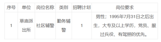 因工作需要,現(xiàn)面向社會公開招聘公安機關警務輔助人員,F(xiàn)將有關事項公告如下: