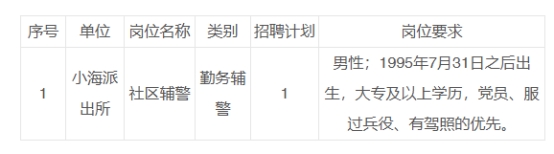 因工作需要,現(xiàn)面向社會(huì)公開招聘公安機(jī)關(guān)警務(wù)輔助人員,F(xiàn)將有關(guān)事項(xiàng)公告如下: