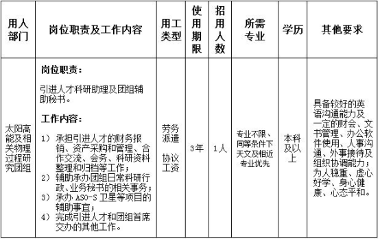 1)應(yīng)招人員個人簡歷(附件2表)“應(yīng)招崗位”欄填報:應(yīng)招太陽高能及相關(guān)物理過程研究團組科研助理崗位。