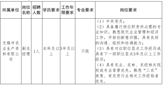 2025年無(wú)錫市供銷(xiāo)合作總社全資企業(yè)招聘公告已于2025年8月13日在無(wú)錫人才網(wǎng)發(fā)布,并于8月29日17時(shí)報(bào)名截止。根據(jù)實(shí)際報(bào)名情況,經(jīng)本次招聘工作領(lǐng)導(dǎo)小組研究,現(xiàn)對(duì)無(wú)錫市農(nóng)業(yè)生產(chǎn)資料有限公司副總經(jīng)理崗位作如下補(bǔ)充調(diào)整: