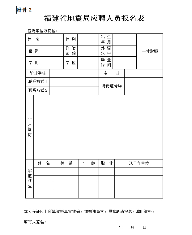 本次考試采取郵寄紙質(zhì)材料或者現(xiàn)場面交的報名方式,報名材料:福建省地震局應聘人員報名表(見附件2)、畢業(yè)證復印件、學位證復印件、身份證復印件,尚未取得畢業(yè)證的2014應屆畢業(yè)生,畢業(yè)證與學位證復印件以就業(yè)推薦表復印件代替。請報名考生留1個以上的電話號碼以便我們聯(lián)系。