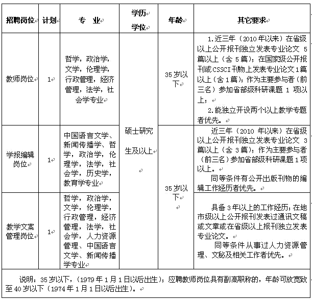 湖南省社會主義學(xué)院2014年公開招聘崗位、計劃及要求一覽表